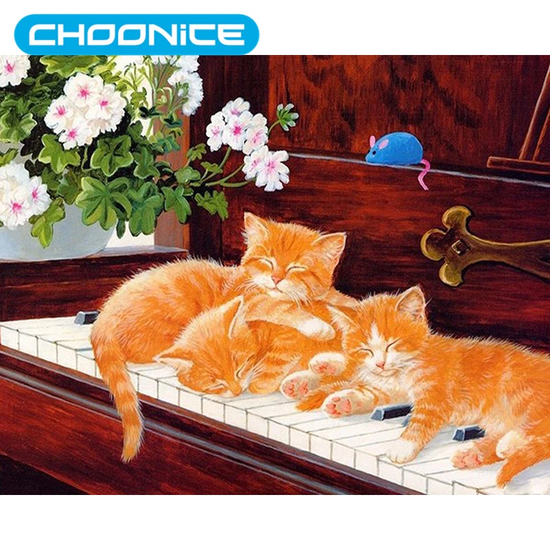 Diamond Painting Piano Cross Stitch Cat Piano Flowers Diy 3d Diamond Embroidery Small Yellow Cat Mosaic Drawings Picture Cat Mosaic Piano Flowersdiamond Painting Aliexpress